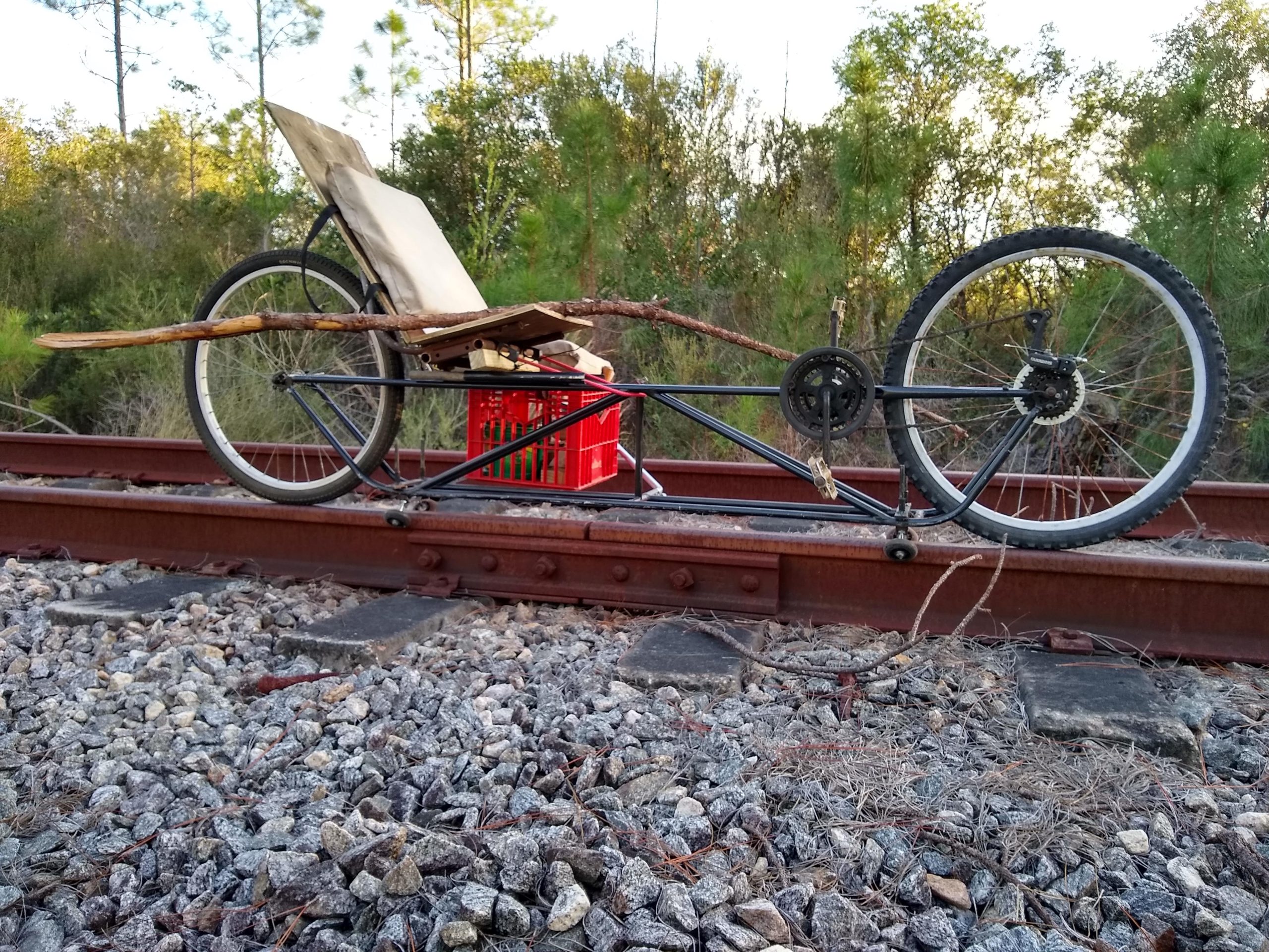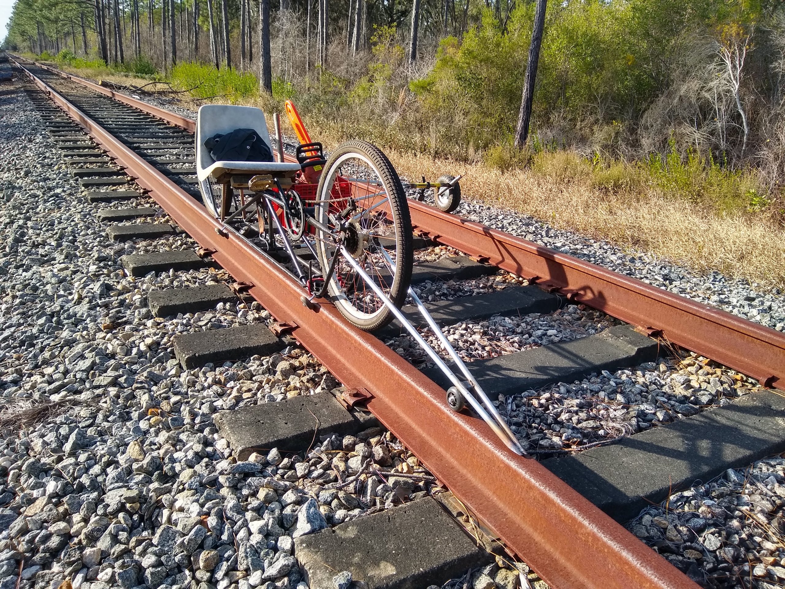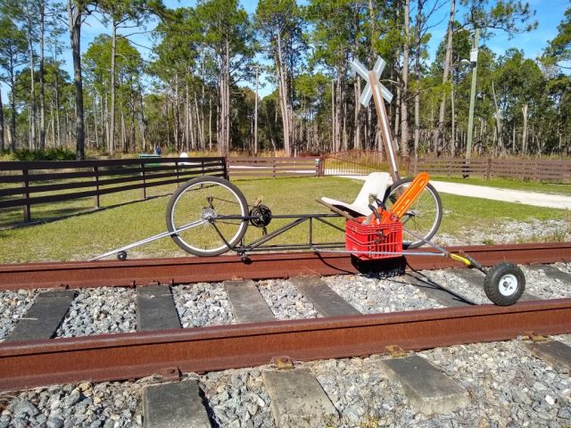 I had started thinking about a rail bike about five years ago while living in Connecticut. There is an extensive, no longer used rail system running along the Connecticut River for many miles. I started hiking along the old tracks and found that a lot of the side hills had slid down and blocked the tracks. The other issue was that much of the tracks had to cross over small creeks and streams that were supported on old trestles that were in bad shape. I mostly forgot about the idea until moving to Florida and found an extensive rail system that is no longer in use and I decided to rekindle the rail bike project. The rail system here is not very old and is in relatively good condition except for the vegetation that has grown up from lack of use and maintenance.